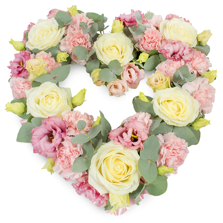 This exquisite bouquet combines the delicate charm of white roses with the subtle allure of pink carnations and lisianthus. Each flower is meticulously hand-selected to ensure ultimate freshness and vibrancy. Enhanced with sprigs of eucalyptus leaves, the floral design offers a graceful balance of softness and sophistication, making it the perfect luxurious gift to honor cherished memories.